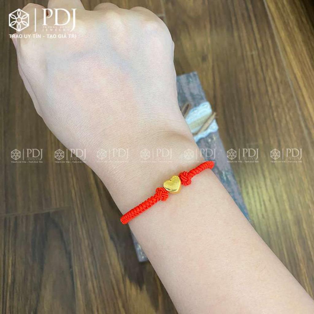 Đeo vòng tay này, bạn sẽ cảm nhận được sự gần gũi, ấm áp từ sợi chỉ đỏ, đồng thời toát lên vẻ thanh lịch, tinh tế nhờ ánh vàng lấp lánh. Đây thực sự là món quà ý nghĩa để tự thưởng cho bản thân hoặc dành tặng người thân trong những dịp đặc biệt.
