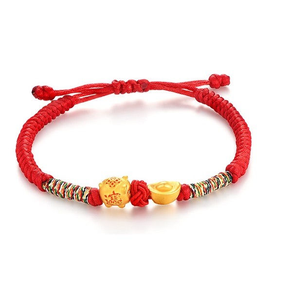 Vòng tay chỉ đỏ vàng 18K còn được chạm khắc hình 12 con giáp, giúp bạn lựa chọn mẫu phù hợp với tuổi của mình, tăng thêm ý nghĩa cá nhân hóa và phong thủy. Chất liệu vàng 18K không chỉ đảm bảo độ bền, sang trọng mà còn phù hợp với nhiều mệnh trong ngũ hành, từ Mộc, Thủy, Kim, Hỏa đến Thổ.