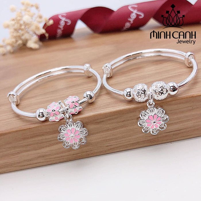 Thiết kế vòng tay cho bé gái thường nhỏ nhắn, có thể là dạng lắc tay hoặc vòng hở, dễ đeo và tháo, phù hợp với hoạt động hàng ngày của bé. Màu sắc và kiểu dáng cũng rất đa dạng, từ đơn giản thanh lịch đến đáng yêu, giúp bé thể hiện cá tính riêng một cách nhẹ nhàng và tinh tế. Đây không chỉ là món trang sức mà còn là kỷ vật lưu giữ những khoảnh khắc tuổi thơ đáng nhớ.