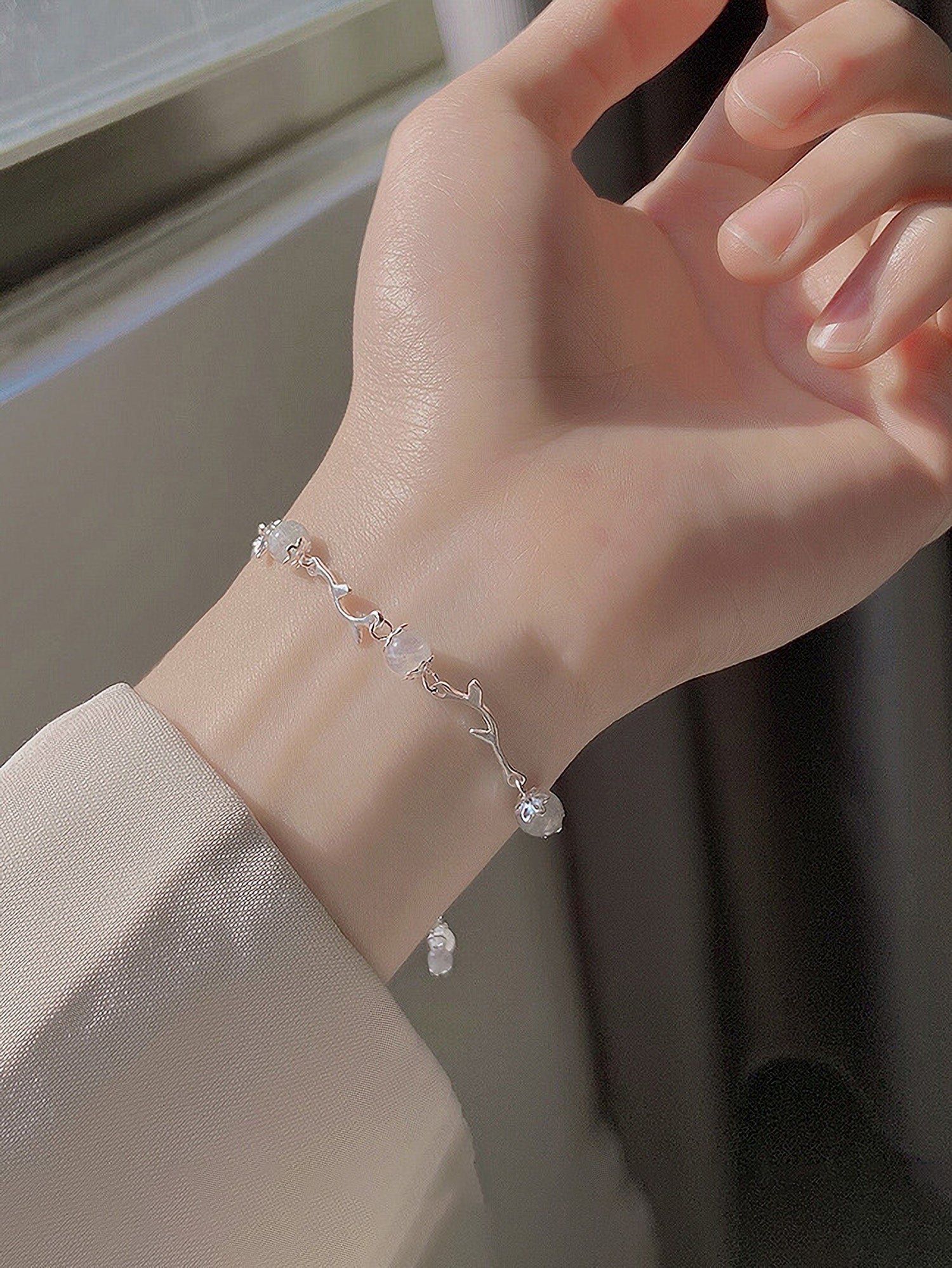 Ngoài ra, vòng tay đá thạch anh trắng cũng là lựa chọn phổ biến bởi sự tinh khiết và nhẹ nhàng, giúp điều hòa năng lượng, mang lại cảm giác bình yên và hạnh phúc cho người đeo. Vòng tay này rất hợp với các bạn nữ mệnh Kim và Thủy, vừa làm nổi bật nét nữ tính vừa tăng cường sự cân bằng trong cuộc sống.