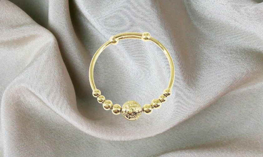 Chiếc lắc tay này không chỉ là món phụ kiện làm tăng sự đáng yêu cho bé mà còn chứa đựng nhiều ý nghĩa sâu sắc. Người lớn thường chọn lắc vàng làm quà tặng cho bé trong các dịp đầy tháng, thôi nôi hay sinh nhật, như một lời chúc phúc, mong muốn sức khỏe và may mắn luôn bên con. Ngoài ra, vì vàng có tính thanh khoản cao, khi bé lớn và vòng bị chật, bố mẹ có thể dễ dàng đổi sang kích thước phù hợp hơn.