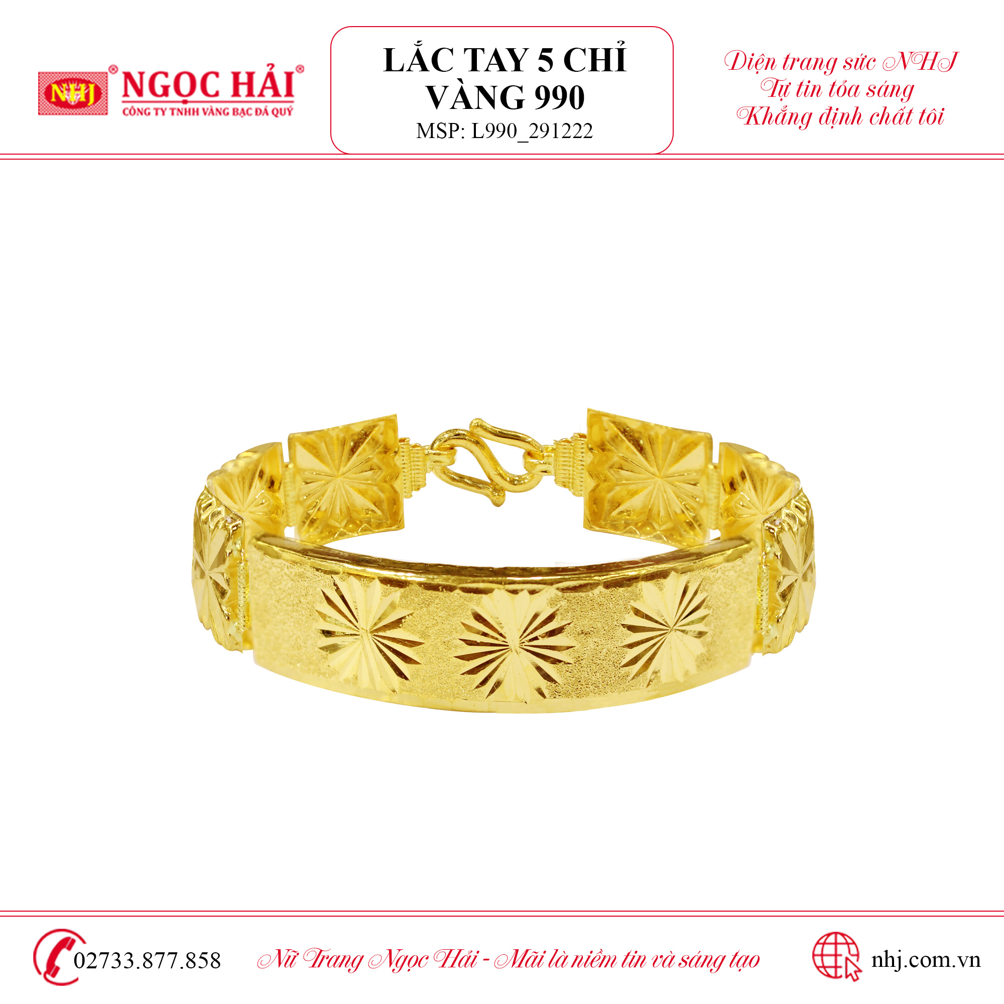 Lắc tay nam vàng 24K 5 chỉ là món trang sức được nhiều quý ông ưa chuộng bởi sự sang trọng và đẳng cấp mà nó mang lại. Với trọng lượng khoảng 5 chỉ, giá của một chiếc lắc tay vàng 24K thường dao động quanh mức 28 triệu đồng, tùy theo giá vàng thị trường và thiết kế cụ thể của sản phẩm.