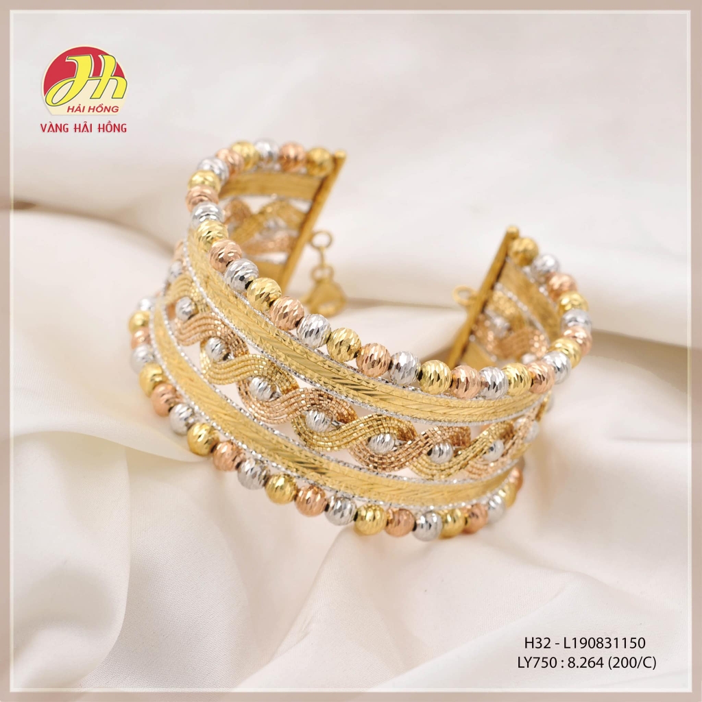 Chất liệu vàng cao cấp như vàng 18K, 24K thường được sử dụng để chế tác vòng tay bản to, mang lại sắc vàng rực rỡ, bền màu theo thời gian. Vòng tay vàng bản to không chỉ đơn giản là một phụ kiện mà còn là biểu tượng của sự sang trọng, đẳng cấp và may mắn. Nhiều người chọn vòng tay vàng bản to để làm quà tặng hoặc để giữ làm kỷ niệm vì ý nghĩa phong thủy và giá trị lâu dài.