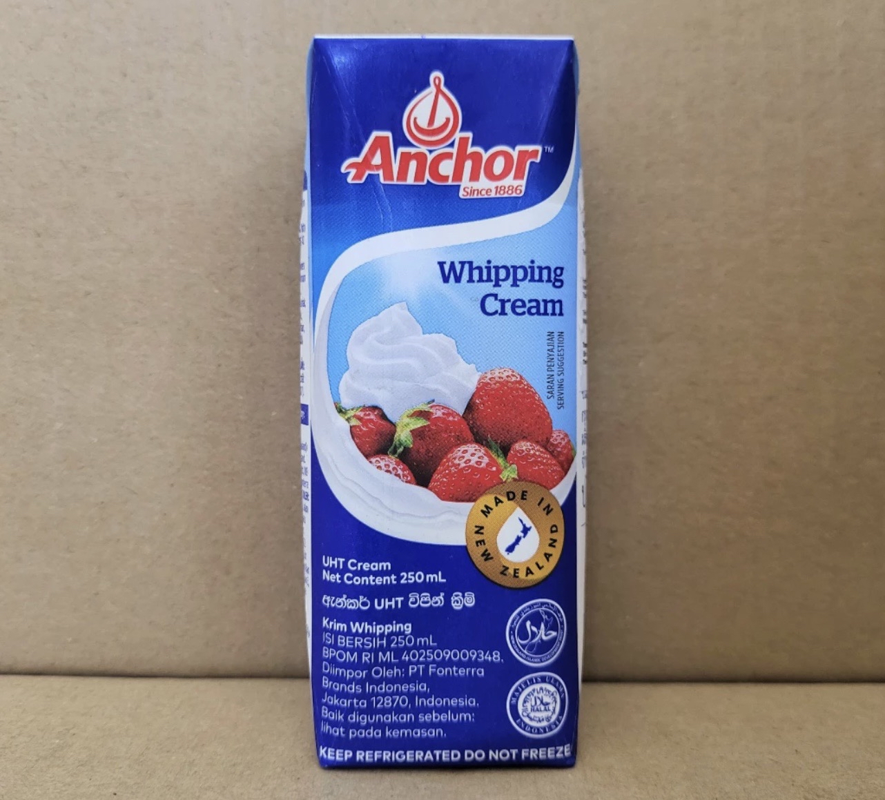 Sản phẩm xuất xứ từ New Zealand, được đóng hộp nhỏ gọn, dễ bảo quản và tránh lãng phí. Bạn chỉ cần bảo quản kem ở nhiệt độ từ 2 đến 4 độ C để giữ cho sản phẩm luôn tươi ngon. Giá bán khá hợp lý, hiện tại Whipping Cream Anchor 250ml có giá khoảng 99.000 ₫, thậm chí có nơi bán chỉ 84.900 ₫.