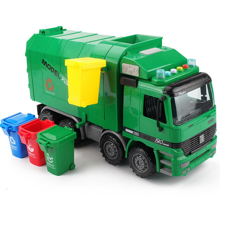 Xe chở rác đồ chơi điều khiển từ xa luôn là một món quà thú vị cho các bé. Với mô hình tỉ lệ 1:24 giống hệt như những chiếc xe thu dọn rác trong thành phố, xe giúp trẻ không chỉ chơi mà còn học thêm ý thức bảo vệ môi trường. Sản phẩm sử dụng sóng 2.4G, cho phép điều khiển dễ dàng với các chức năng tiến, lùi, rẽ trái, rẽ phải và đặc biệt là khả năng đổ rác thật sự, tạo ra những trải nghiệm thú vị.