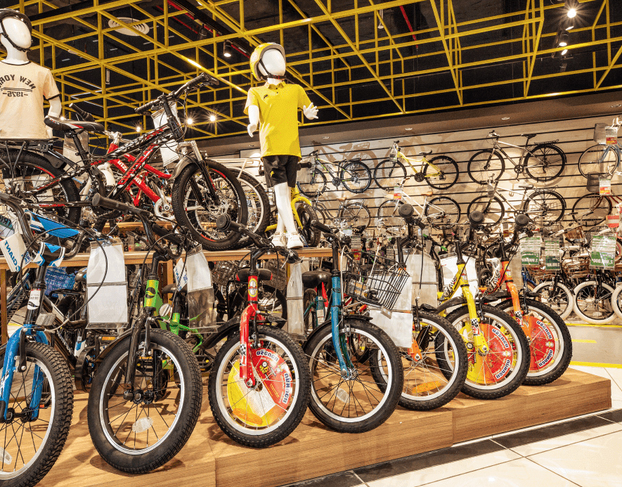Nếu bạn đang tìm kiếm một chiếc xe đạp ưng ý, Aeon Mall Tân Phú chính là điểm đến lý tưởng dành cho bạn. Tại AEON Bicycle Shop, bạn sẽ được trải nghiệm nhiều loại xe đạp đa dạng như xe thể thao, xe địa hình, xe gấp gọn và xe cho trẻ em. Mỗi sản phẩm được đảm bảo chất lượng cao và phụ kiện đi kèm cũng rất phong phú.