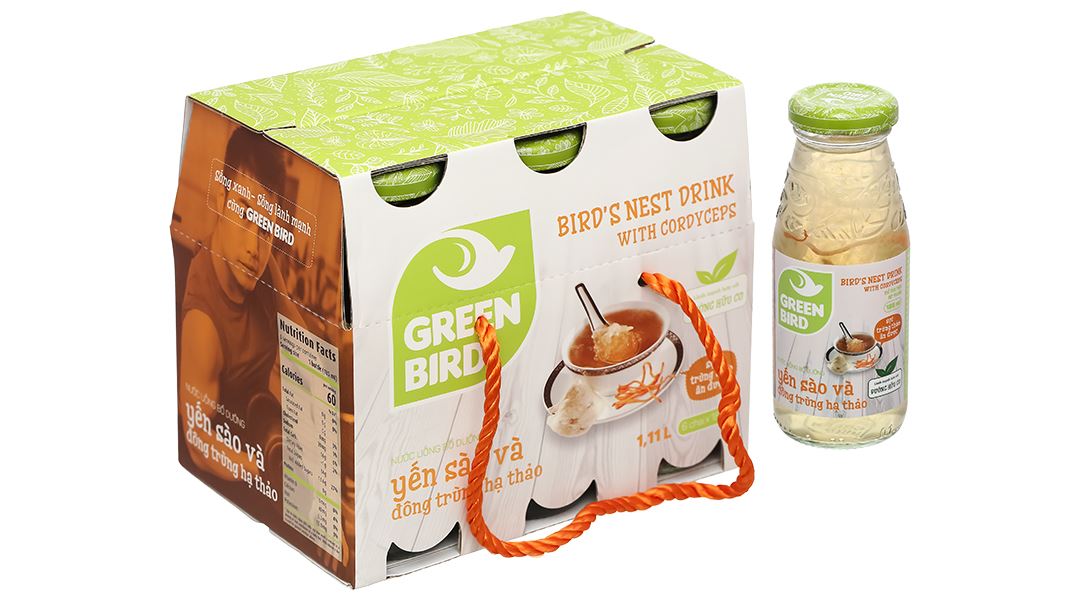 Một sản phẩm đáng chú ý khác là nước yến sào và đông trùng hạ thảo Green Bird, không chỉ bổ sung năng lượng mà còn cung cấp nhiều dưỡng chất quý giá. Hãy thử khám phá dòng sản phẩm yến chưng tiệt trùng với giá chỉ từ 75.000 VNĐ/hũ, chất lượng đảm bảo và hương vị thơm ngon.