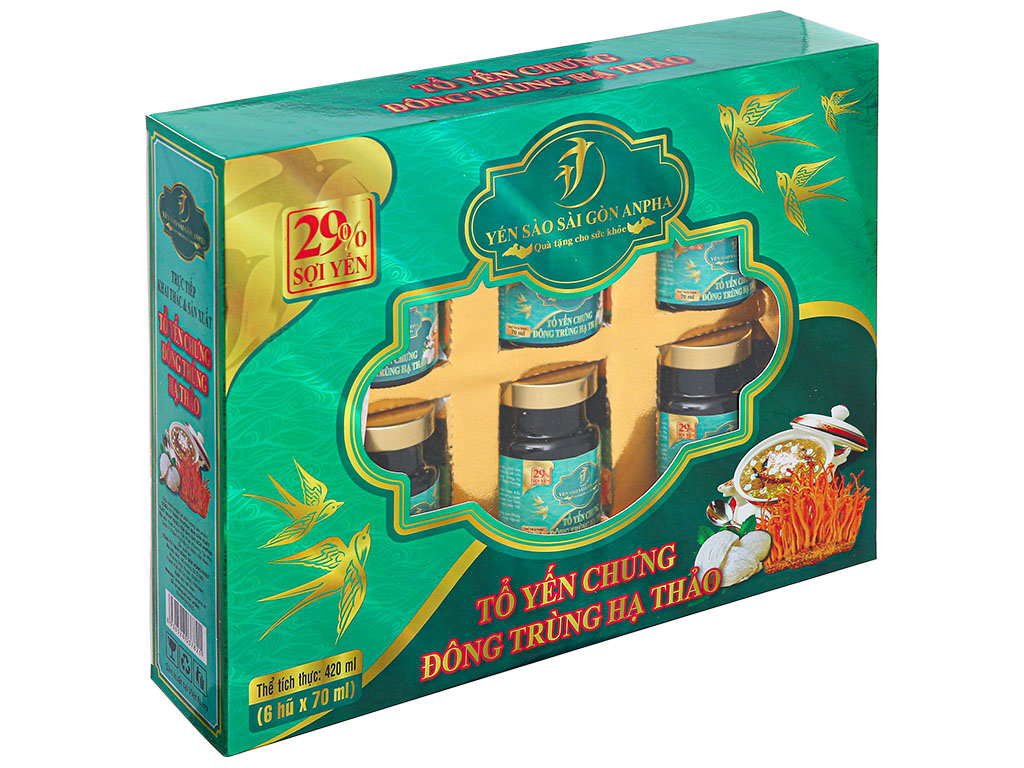 Một trong những sản phẩm nổi bật là hộp quà tổ yến chưng sẵn hương sâm, bao gồm 6 hũ x 70ml, với giá chỉ 507.000 VNĐ. Đây là món quà ý nghĩa cho gia đình, đặc biệt là cho trẻ nhỏ, giúp bổ sung dinh dưỡng một cách tiện lợi. Thêm vào đó, các sản phẩm như nước yến chưng đông trùng hạ thảo cũng được nhiều người tìm kiếm, với thành phần giàu giá trị dinh dưỡng.
